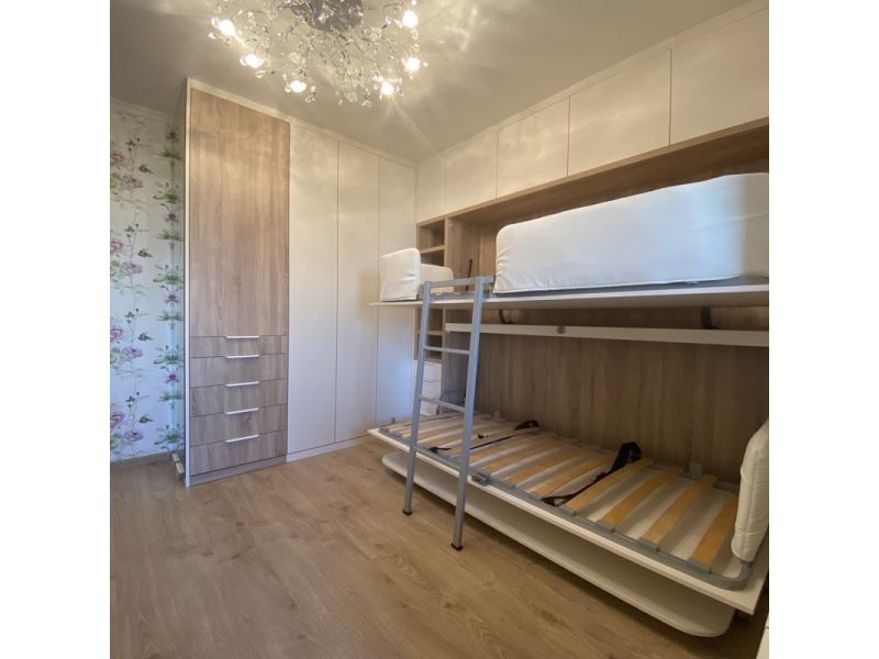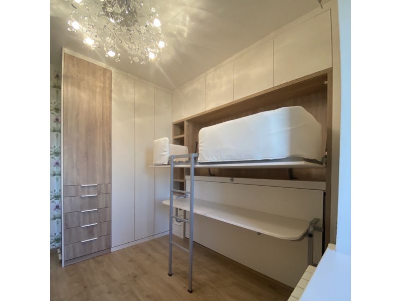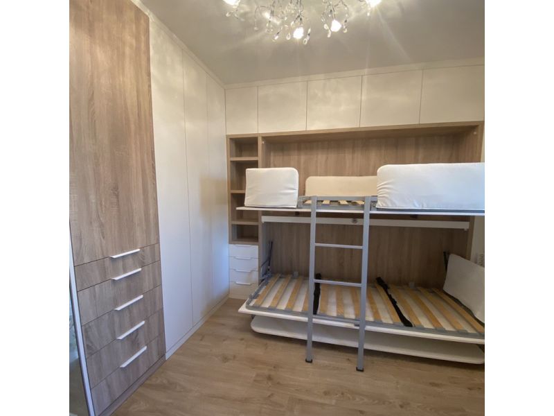 • Зона для учёбы и сна: Двухъярусная конструкция "стол-кровать" и вторая двухъярусная кровать.