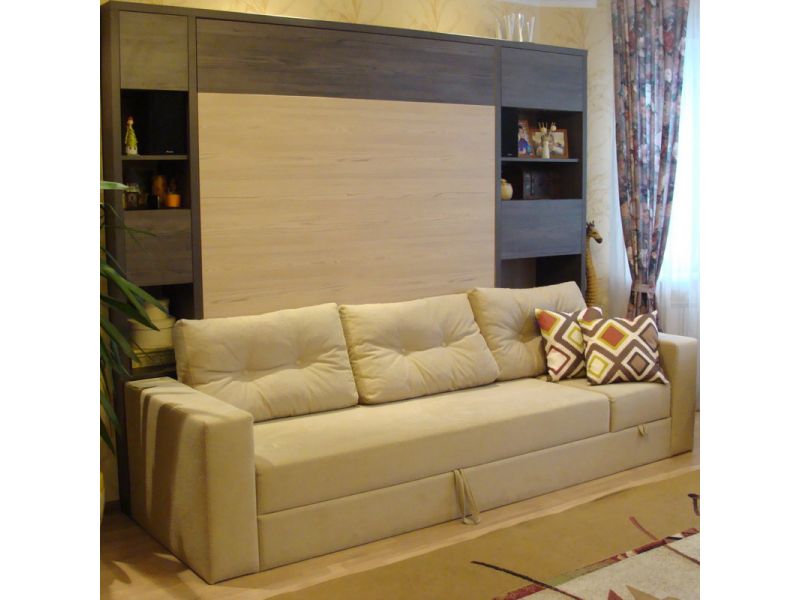 Задача была спрятать спальное место размером 1600 * 2000 мм с надежным механизмом, так как планировалось ежедневное поднятие кровати.