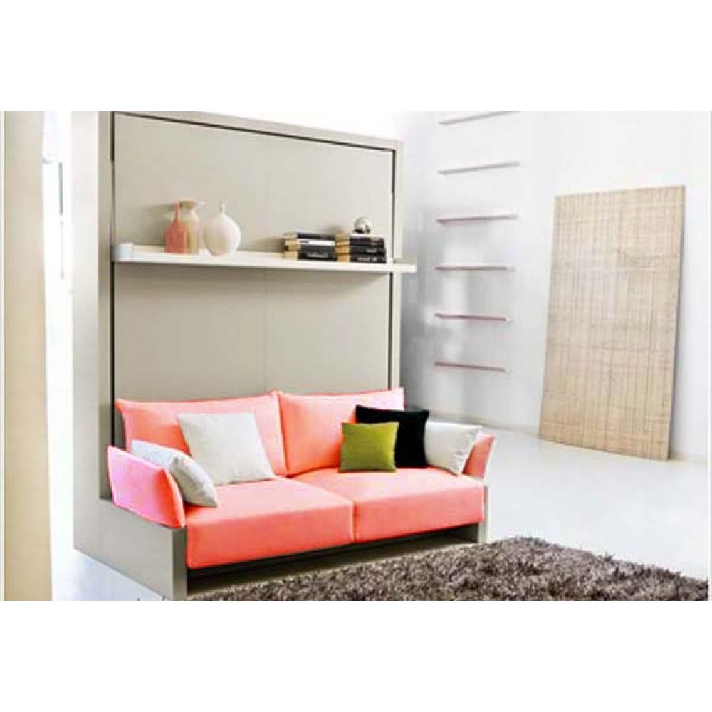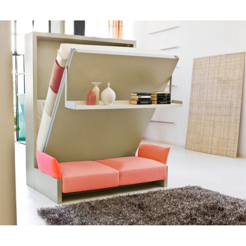 Шкаф-кровать с полкой - еще один элемент декора. Смотрится отлично и современно, легко спрятать врезную ручку для открытия кровати.
