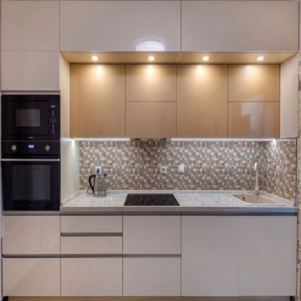 Нежная классика белого и нежно бежевого в крашенном МДФ. С пленительным сочетанием глянцевой и матовой фактуры.