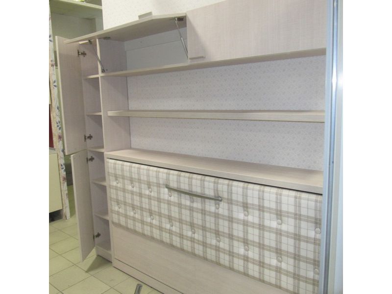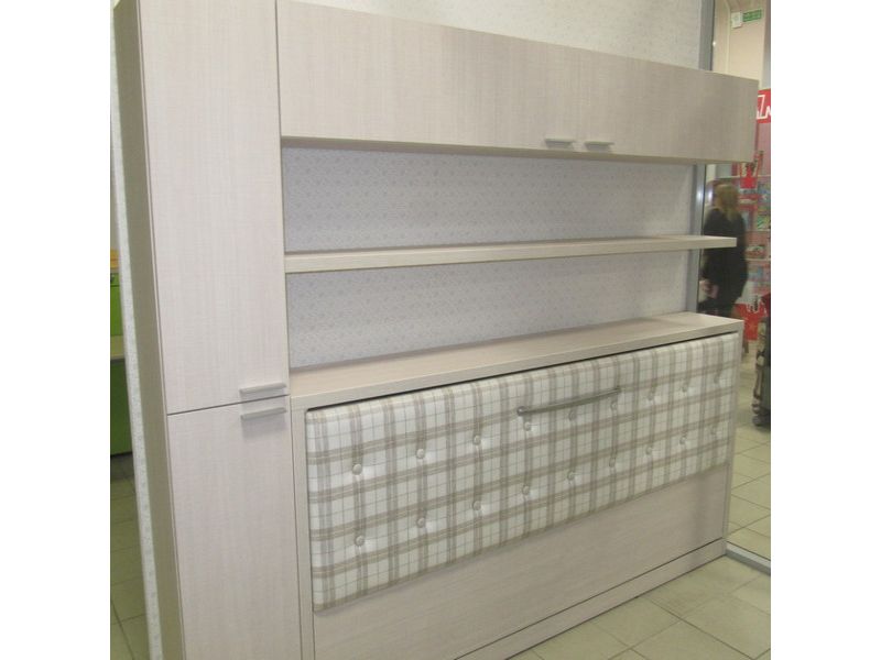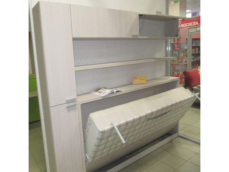 Односпальная кровать-комод выполнена в горизонтальном видеть.