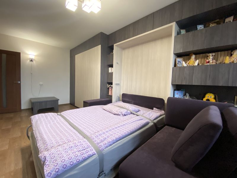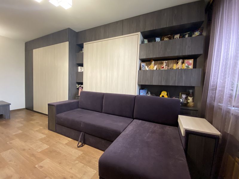 Комната - зал: спать, просмотр телевизора, встреча гостей и ежедневные посиделки с семьей. Семья большая и веще очень много, нужен шкаф. Кухня 7,2 кв. метра и хотелось бы там иметь все ежедневно необходимое, а остальное: полотенца, сервизы, скатерти хранить где-то еще, ну, например, в зале...