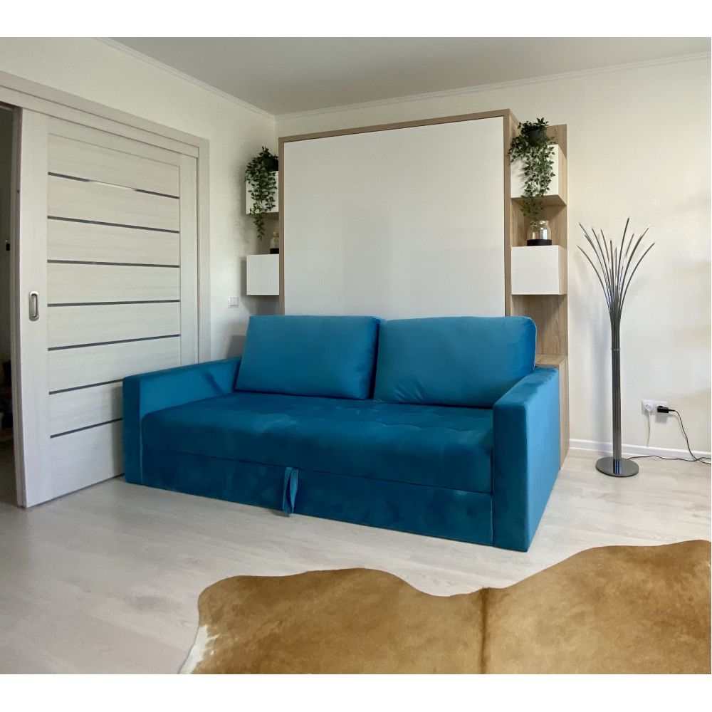 Спальню с кроватью трансформер "Римма" с бирюзовым диваном.